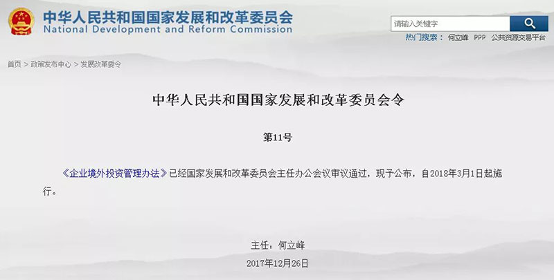 走出去的企業(yè)要注意了,從2018年3月1日起,對外投資新規(guī)———《企業(yè)境外投資管理辦法》(下稱“新辦法”)將正式施行,該辦法是國家發(fā)改委2017年臨近年末時發(fā)布的。